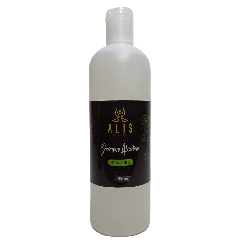 Shampoo Alcalino 480 ml marca ALIS. Diseñado para la limpieza profunda del cabello y el cuero cabelludo previo a la realización de un alisado o cualquier tratamiento. Lavar el cabello un mínimo de 2 veces.